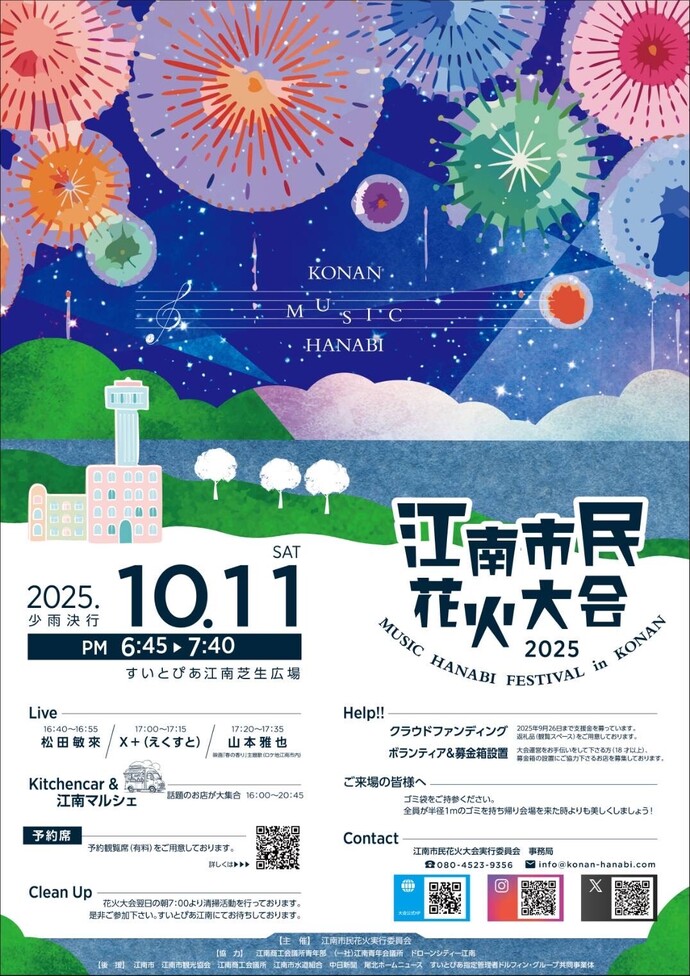 問い合わせ | TEL:080-4523-9356 (江南青年会議所事務局内 江南市民花火大会実行委員会) |