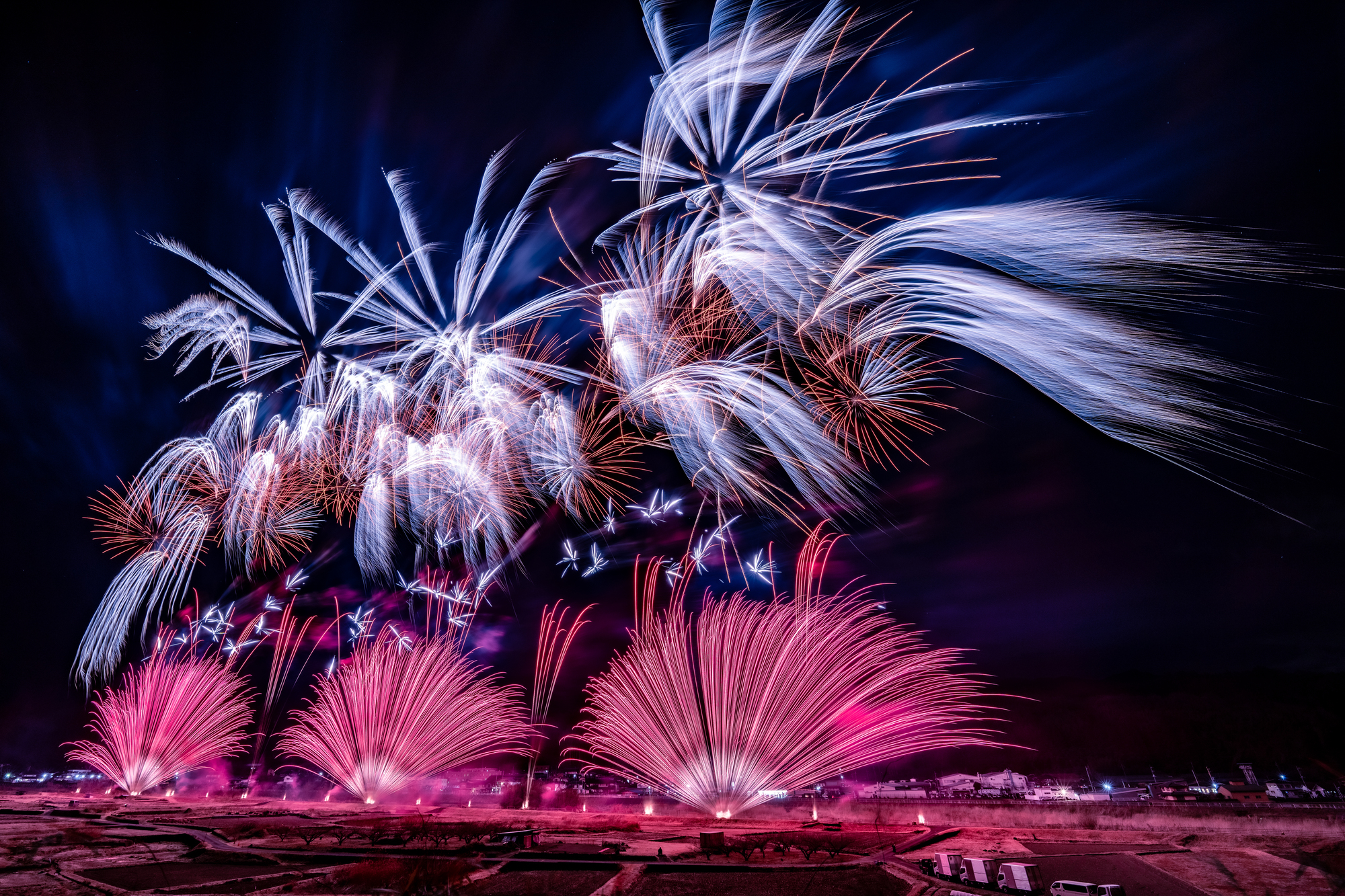 | 花火会社・花火師 | 北日本花火興業(秋田県)、小松煙火工業(秋田県)、佐藤煙火(宮城県)、福山花火工場(千葉県)、根岸火工(埼玉県)、伊那火工堀内煙火店(長野県)、華松煙火(長野県)、紅屋青木煙火店(長野県)、アルプス煙火工業(長野県)、ファイアート神奈川(神奈川県)、マルゴー(山梨県)、山内煙火店(山梨県)、村瀬煙火(岐阜県)、森上煙火工業所(岡山県)、岸火工品製造所(徳島県)、ワキノアートファクトリー(福岡県)、唐津煙火(佐賀県)、金田花火(熊本県) |