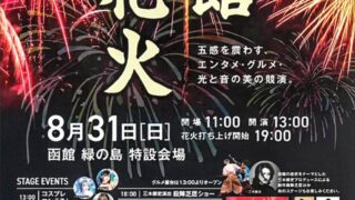 北海道函館市 函館新花火(北海道函館市) 函館新花火は、北海道函館市の緑の島特設会場で2025年8月31日(日)に行われる花火大会。函館新花火の開催日時、観覧場所、花火打ち上げ数、座席案内、プログラム、交通アクセス、関連動画、写真などの詳細情報。 北海道函館市