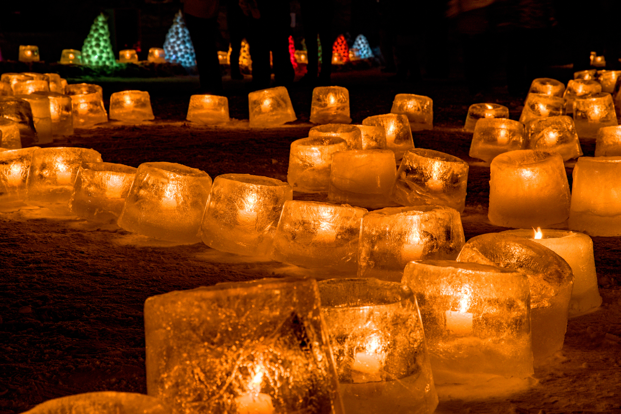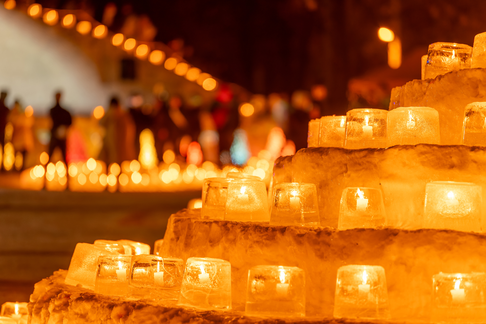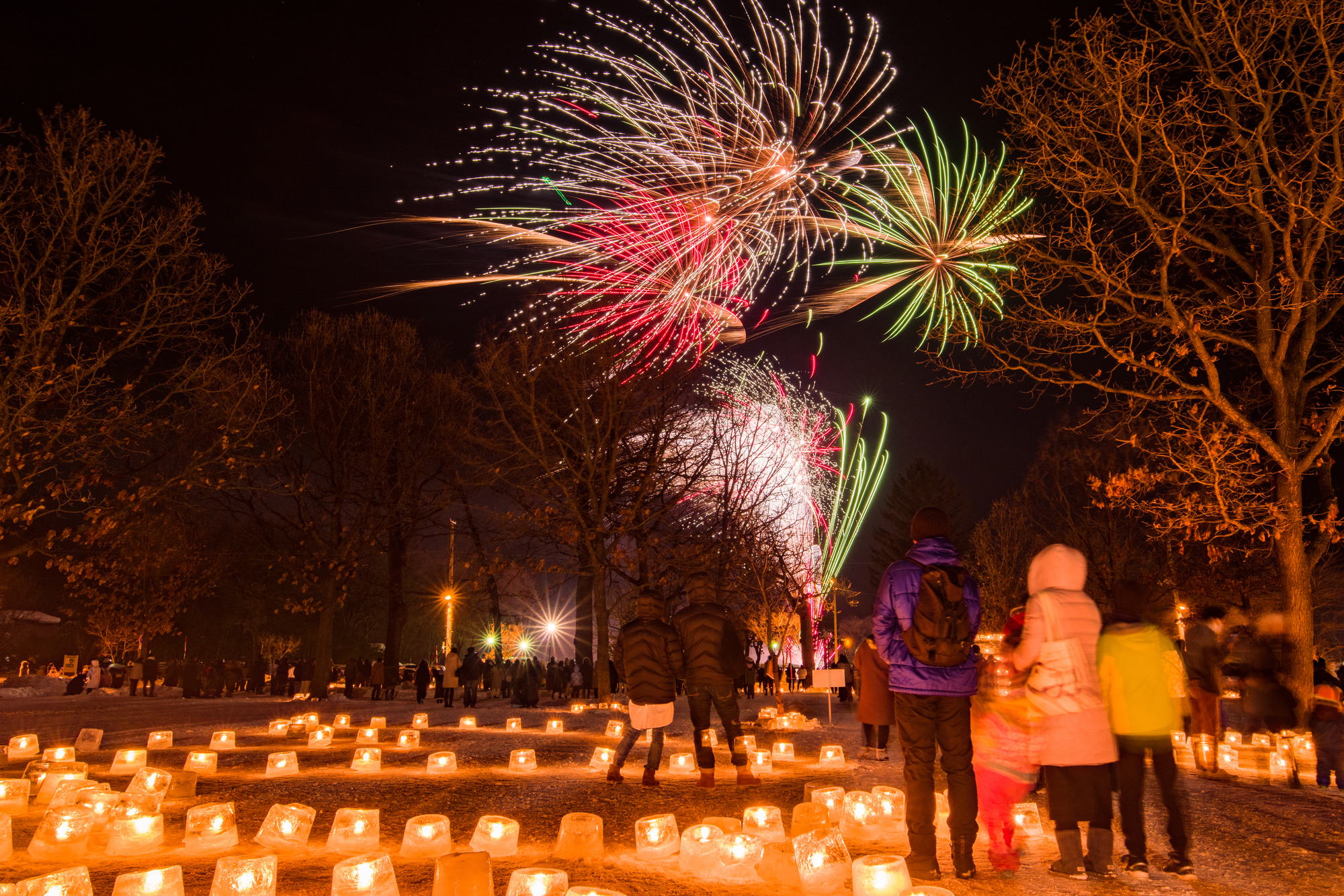約2,500個のアイスキャンドルが灯る十勝を代表する冬のイベントでフィナーレの夜空を彩る花火。