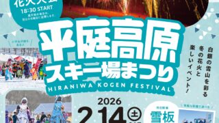 平庭高原スキー場まつり花火大会は、岩手県久慈市の平庭高原スキー場で2026年2月14日(土)に行われる花火大会。平庭高原スキー場まつり花火大会の開催日時、観覧場所、花火打ち上げ数、座席案内、プログラム、交通アクセス、関連動画、写真などの詳細情報。
