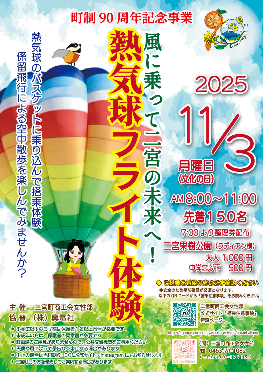 2025年二宮町町制施行90周年記念イベント「熱気球フライト体験」チラシ