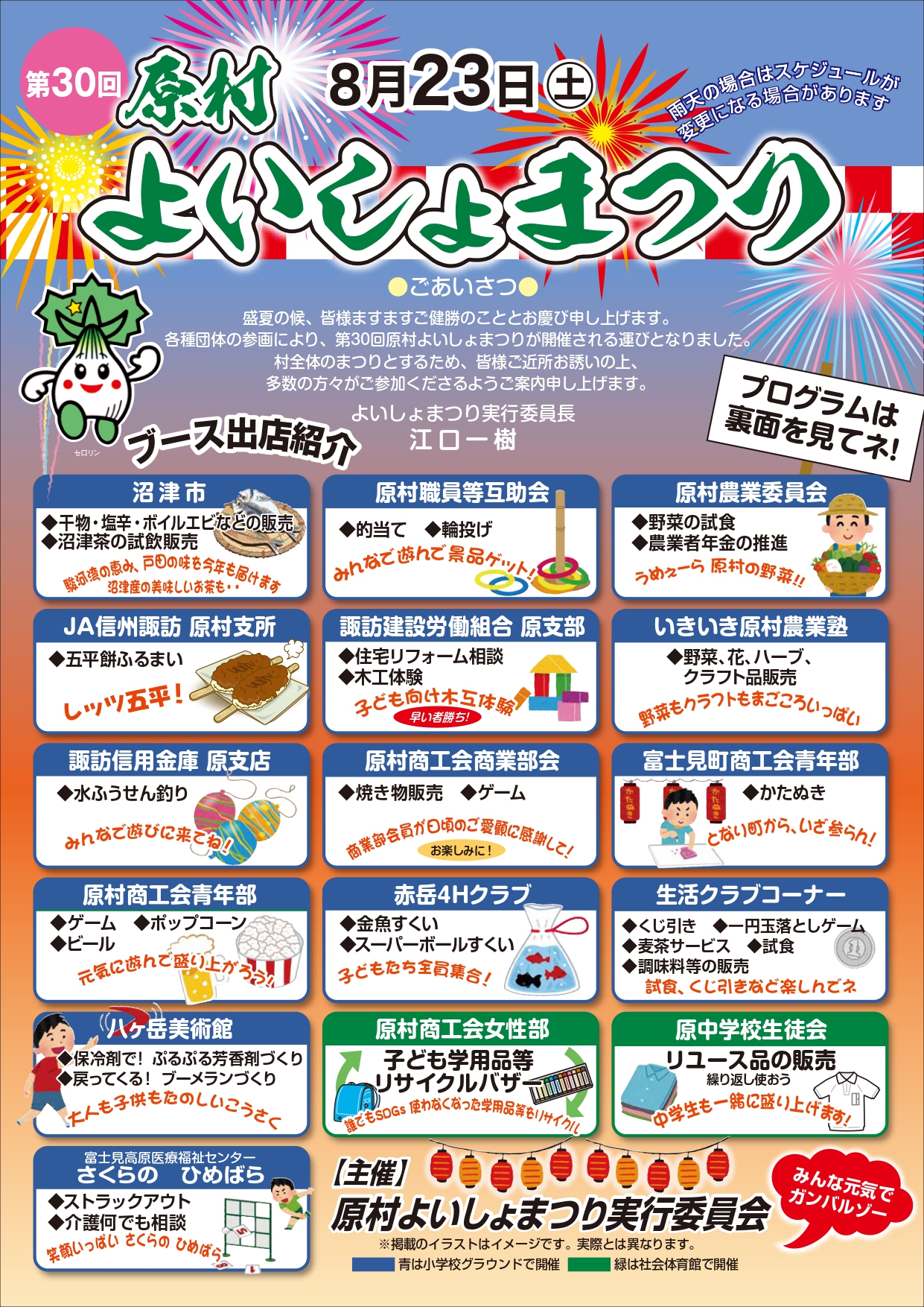 2025年原村よいしょまつりチラシ裏面(会場図・プログラム)