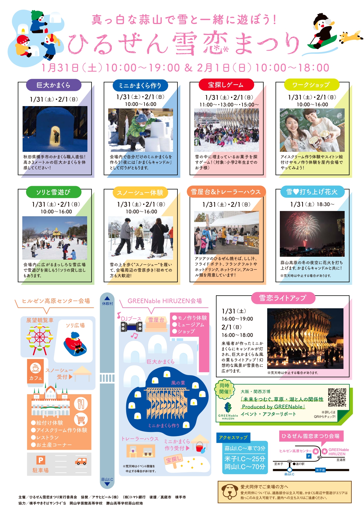 | 問い合わせ | TEL:0867-66-3220 (蒜山観光協会内 ひるぜん雪恋まつり実行委員会事務局) |