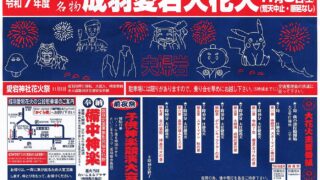 岡山県高梁市 成羽愛宕大花火(岡山県高梁市) 成羽愛宕大花火は、岡山県高梁市の成羽川河川敷鶴見橋付近で2025年11月8日(土)に行われる花火大会。成羽愛宕大花火の開催日時、観覧場所、花火打ち上げ数、座席案内、プログラム、交通アクセス、関連動画、写真などの詳細情報。 岡山県高梁市