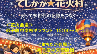 てしかが花火村冬夜空打上花火は、北海道弟子屈町の弟子屈中学校グラウンドで2026年2月22日(日)に行われる花火打ち上げ花火。てしかが花火村冬夜空打上花火の開催日時、観覧場所、花火打ち上げ数、座席案内、プログラム、交通アクセス、関連動画、写真などの詳細情報。