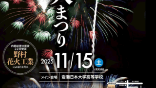 羽黒の花火まつりは、茨城県桜川市の岩瀬日本大学高等学校サッカーグラウンドで2025年11月15日(土)に行われる花火大会。羽黒の花火まつりの開催日時、観覧場所、花火打ち上げ数、座席案内、プログラム、交通アクセス、関連動画、写真などの詳細情報。