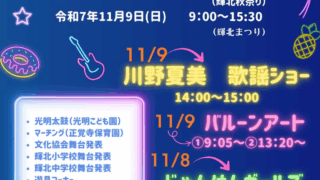 鹿児島県鹿屋市 輝北秋祭り花火大会(鹿児島県鹿屋市) 輝北秋祭り花火大会は、鹿児島県鹿屋市の輝北運動場で2025年11月8日(土)に行われる花火大会。輝北秋祭り花火大会の開催日時、観覧場所、花火打ち上げ数、座席案内、プログラム、交通アクセス、関連動画、写真などの詳細情報。 鹿児島県鹿屋市